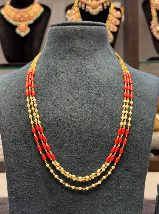 19208 5 Lines Mala GP AD Stone Pendent Set Red