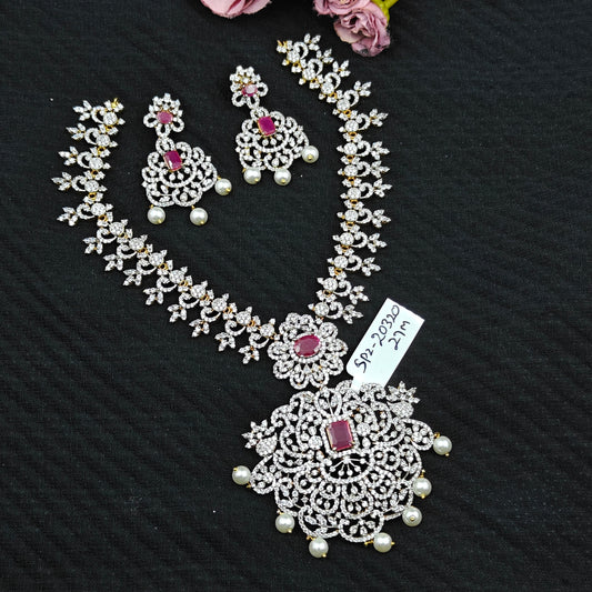 27912 Diamond Look Ruby stone long necklace