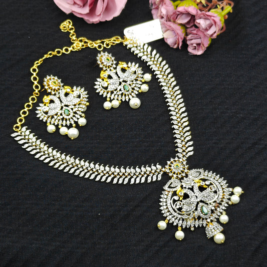 6694 Diamond look peacock simple necklace