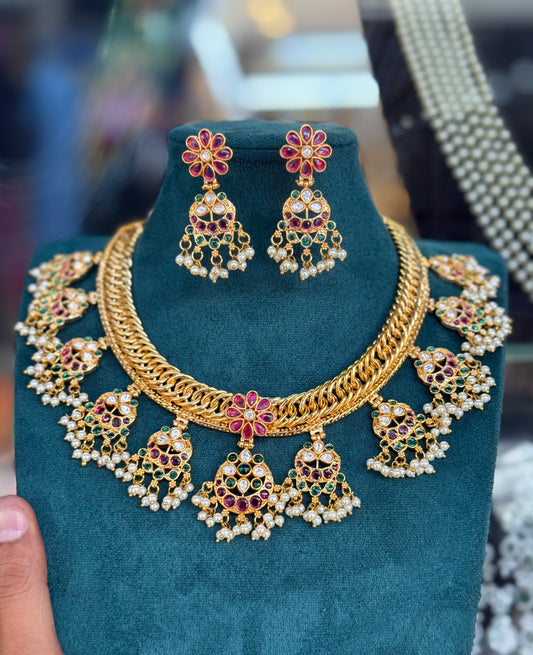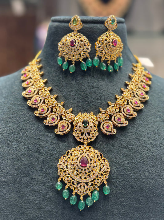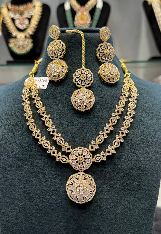 9085/15637 GP AD Stone 5 Lines Necklace Set