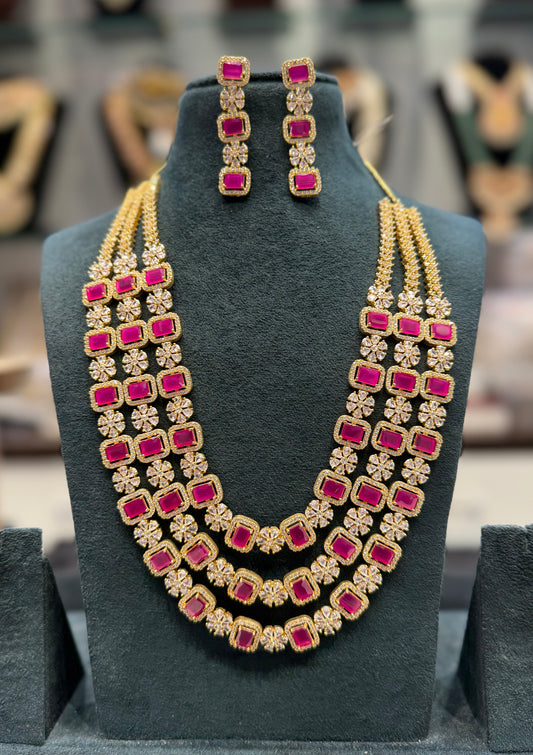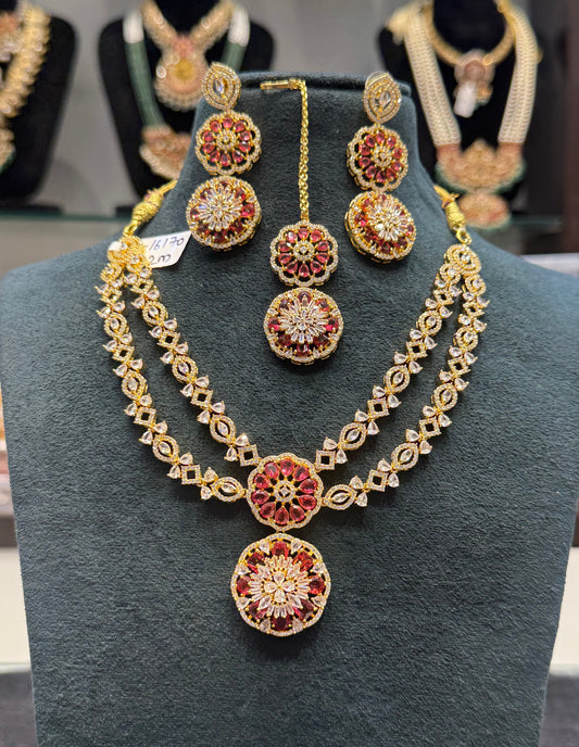 14521 CZ Long Full Red Diamond Shape Necklace Set