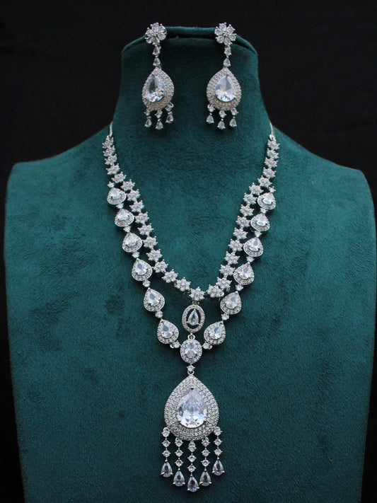 13150 Platinum AD 3 Lines Full White Necklace Set