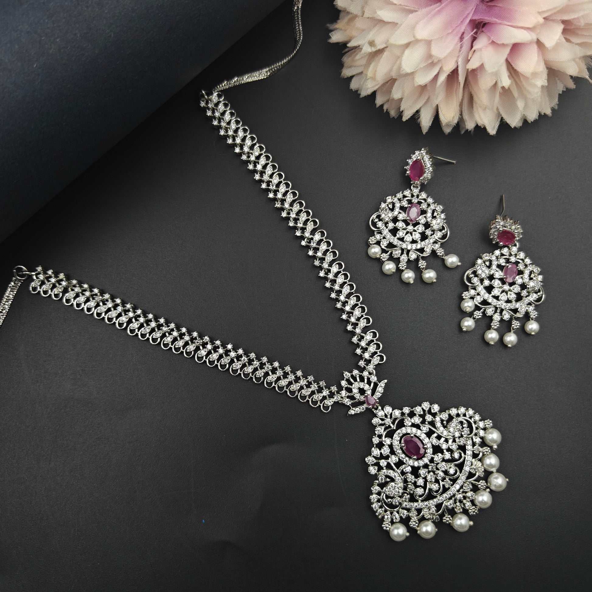 10462 / 10465 Platinum Short Necklace Set Red