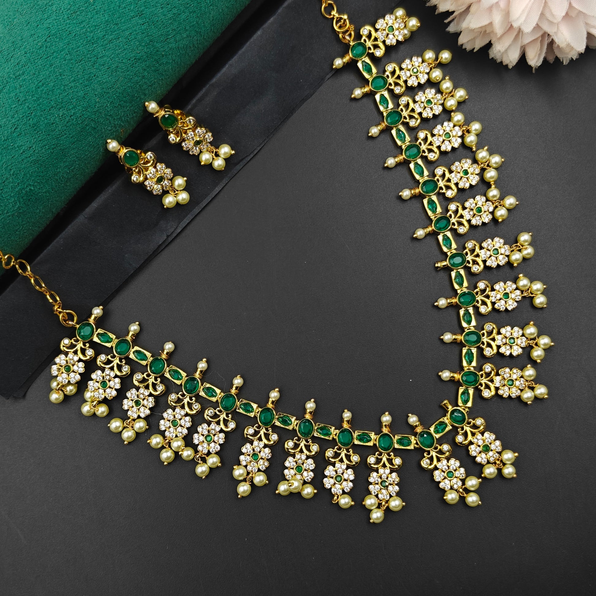 1099 Guttapusalu Green Short Necklace Set