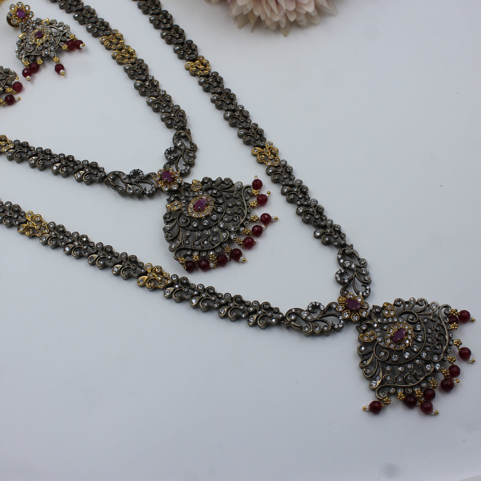 16773 Victorian Flower Ball Red Combo Red Necklace Set