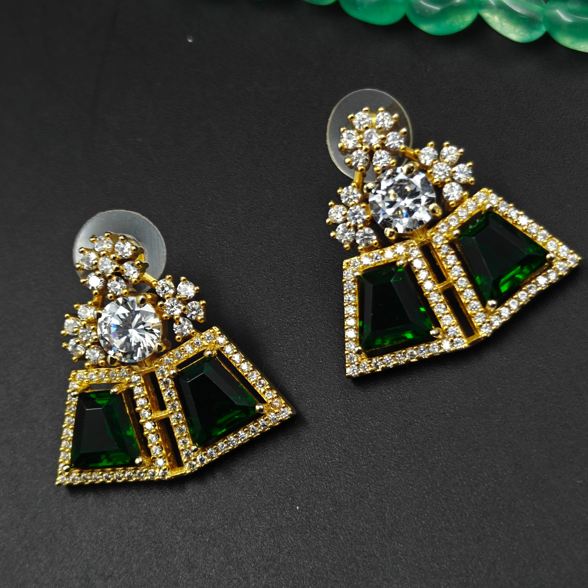 19607 3 Lines Green Beads Mala With Pendent Set