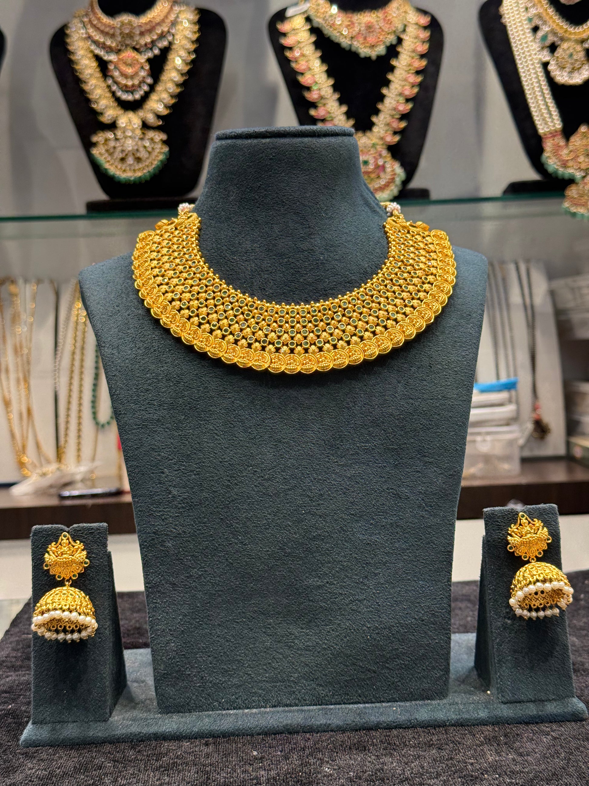 3260 green stone Nakshi choker necklace