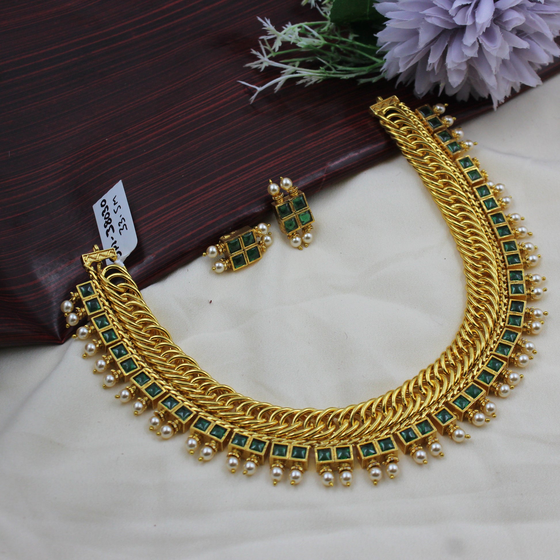 38030 Jadau Kundan Jalebi Necklace with Swarovski pearls