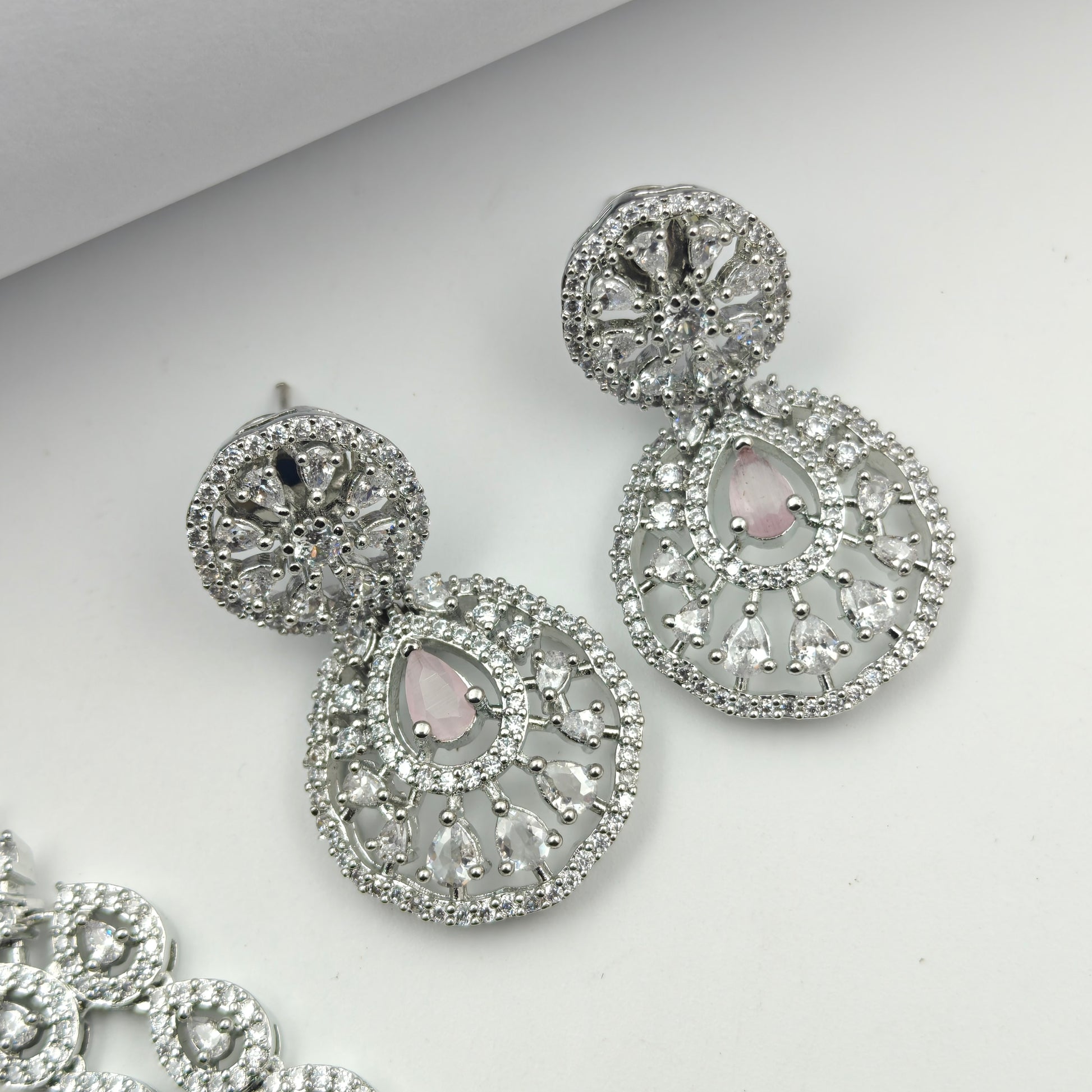 38865 Platinum Necklace Set Mint Pink