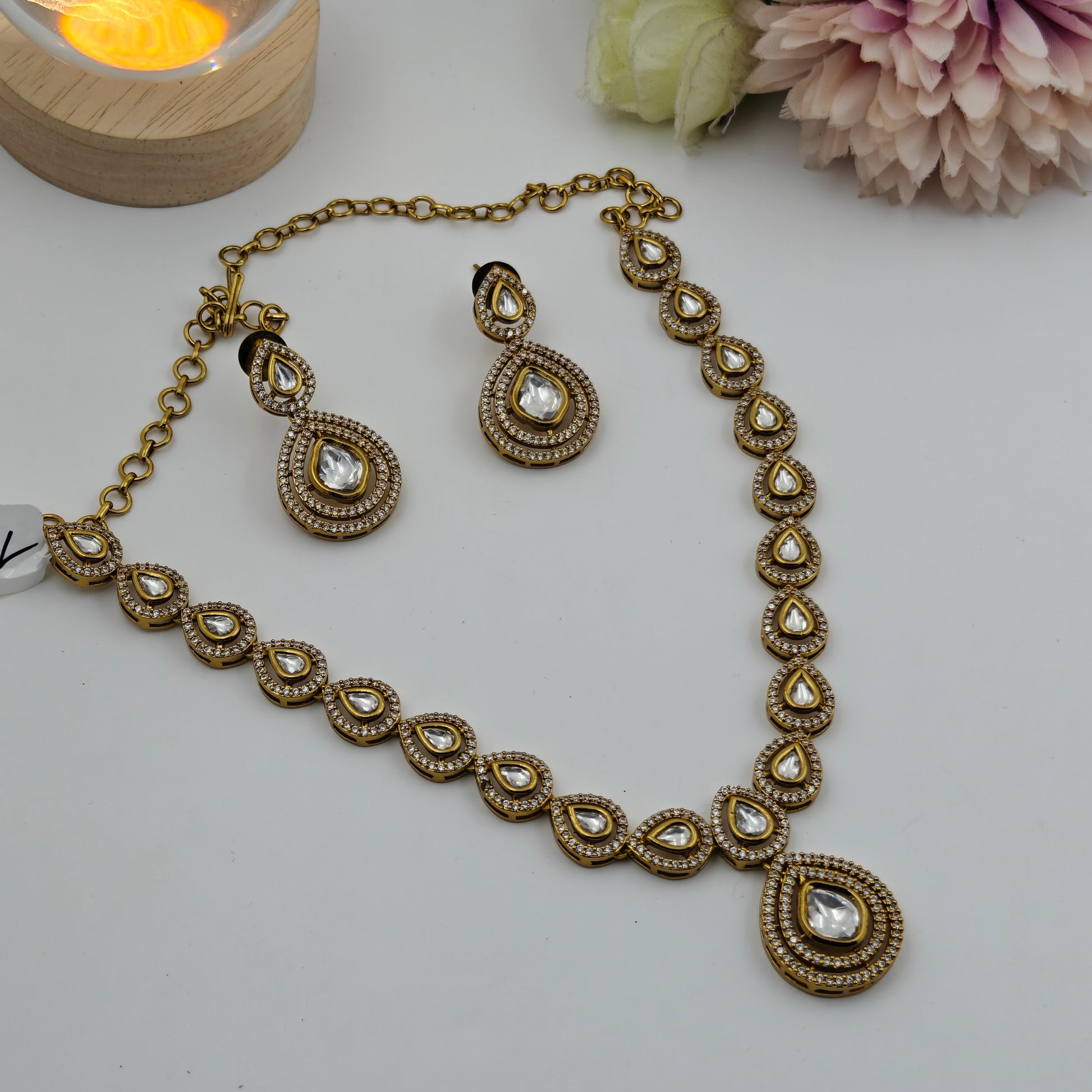 39173 / 39260 Victorian moissanite stones necklace with drop pattern