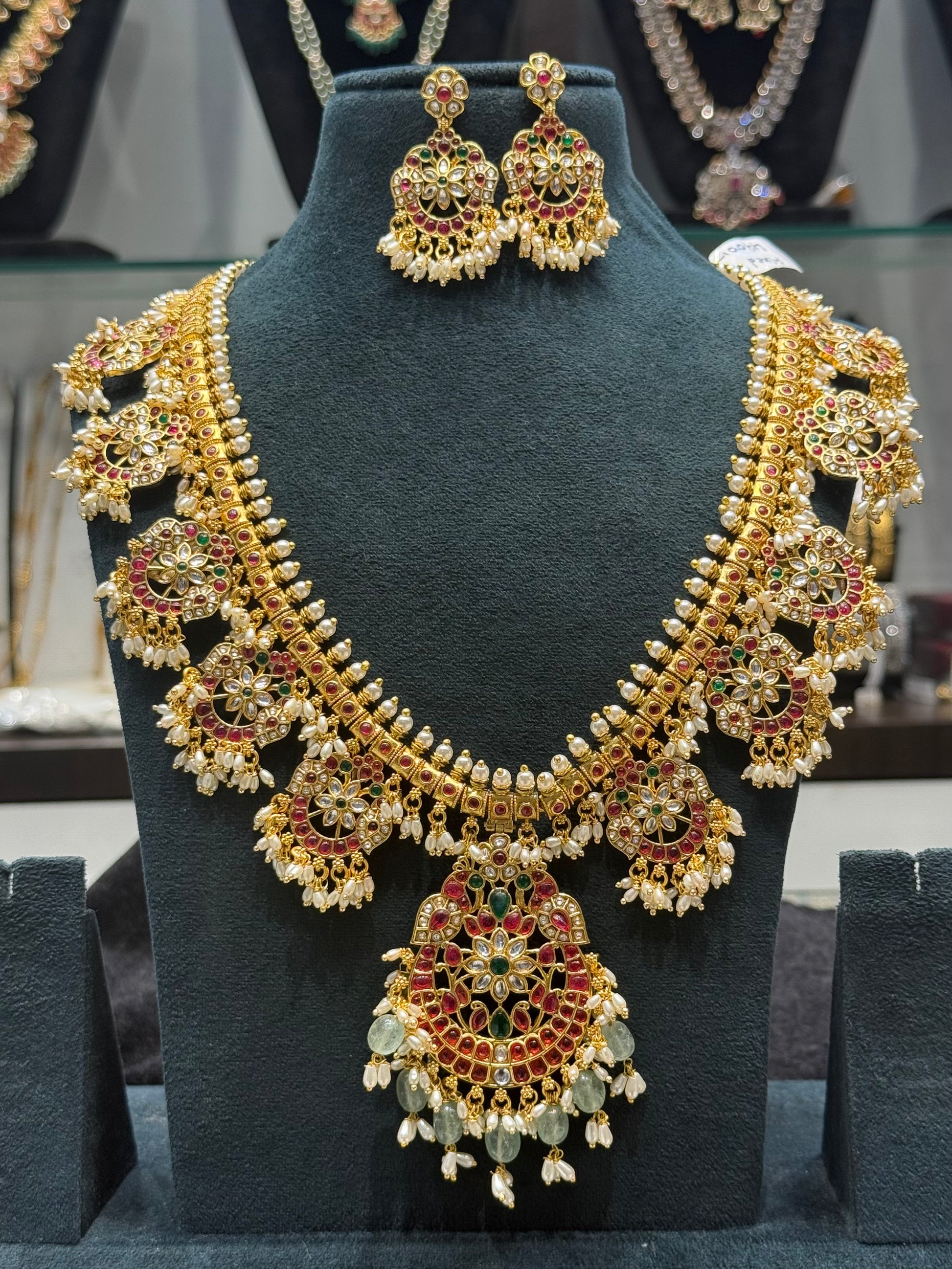 39225 / 40240 Gold look bridal guttapusalu haaram with rice pearls making