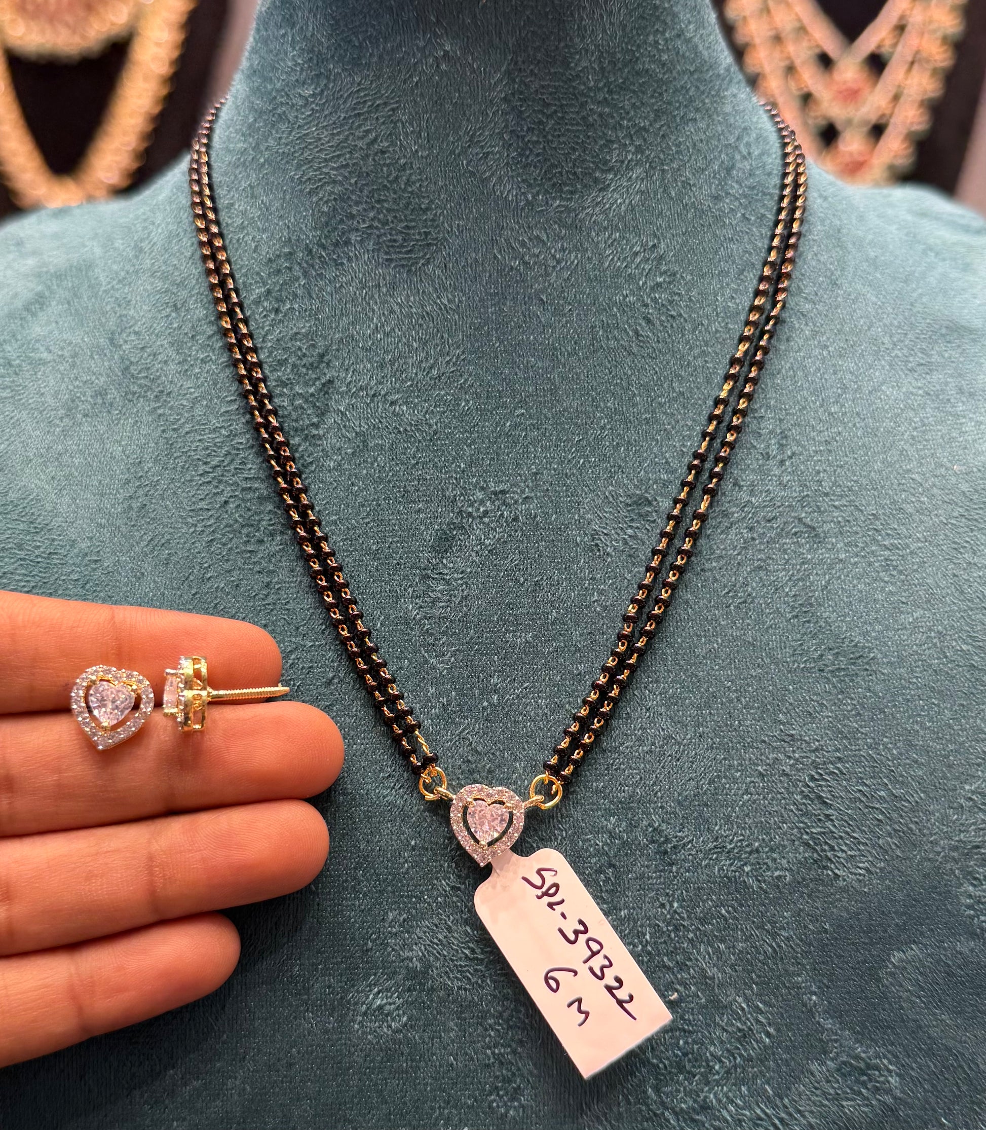 39322 heart shaped real diamond look black beads 18’’