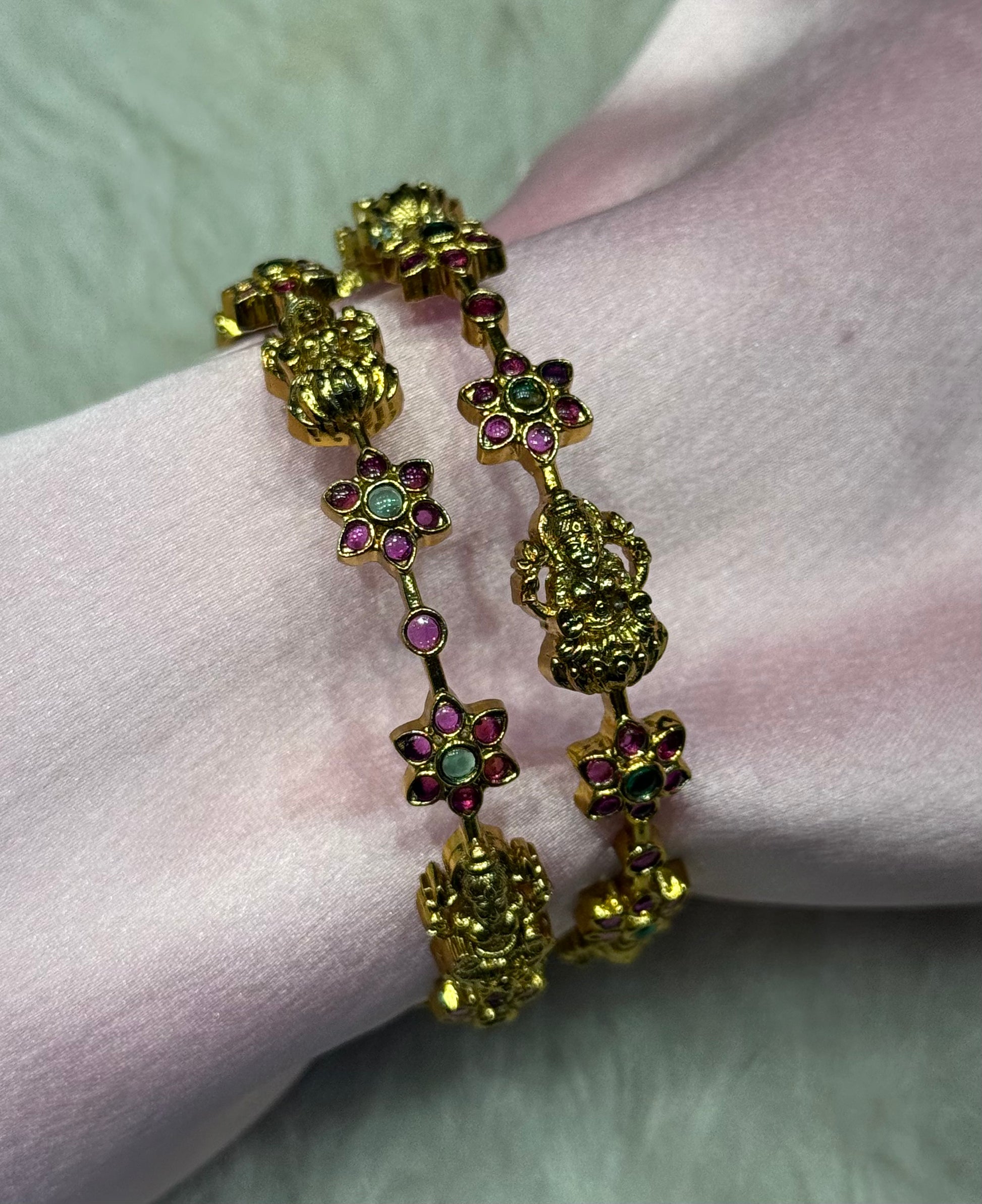 39859 Lakshmi Pota stone bangles with flower pattern