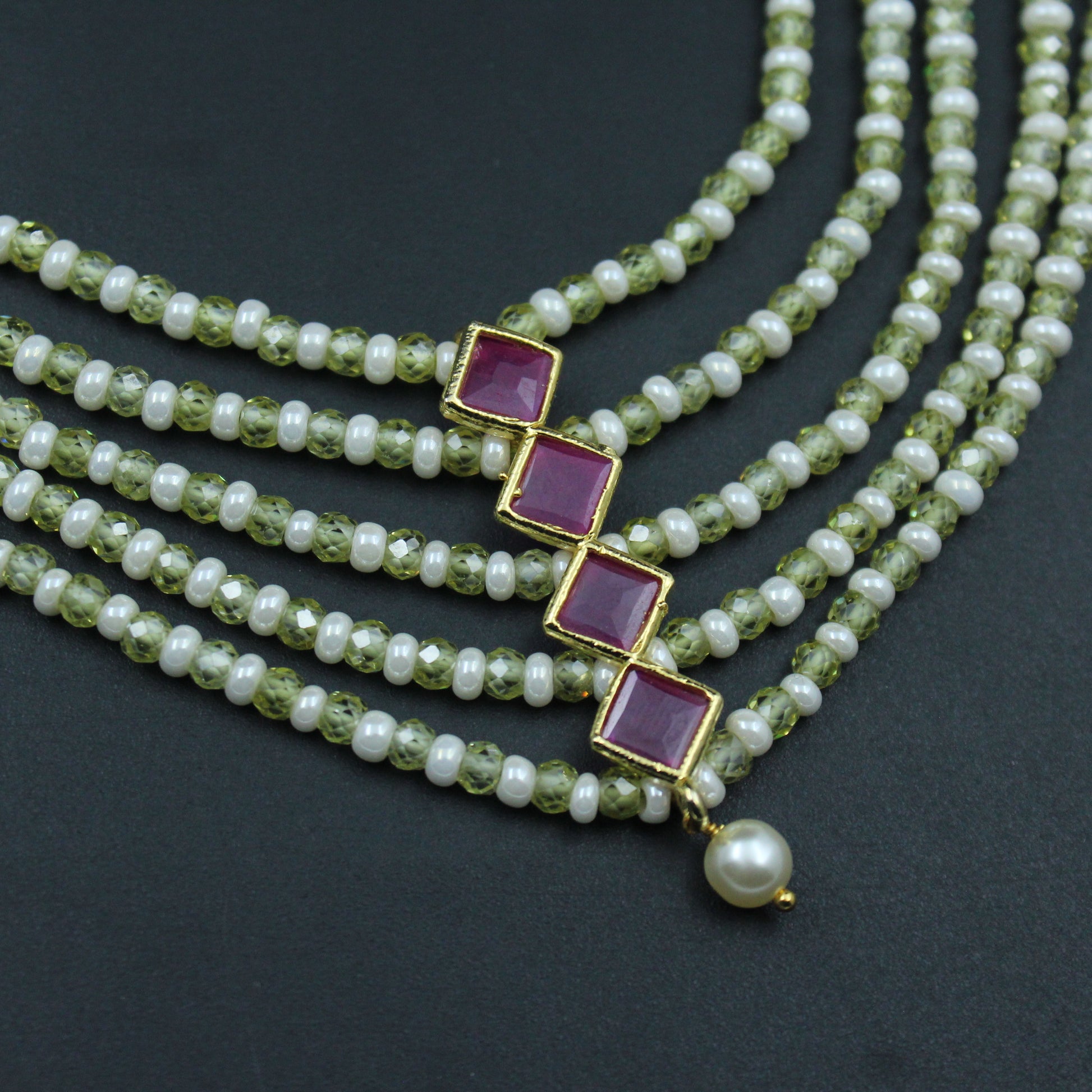 40316 - 5 Lines Sugar Beads Light Green Mala With Square Pendent Merron