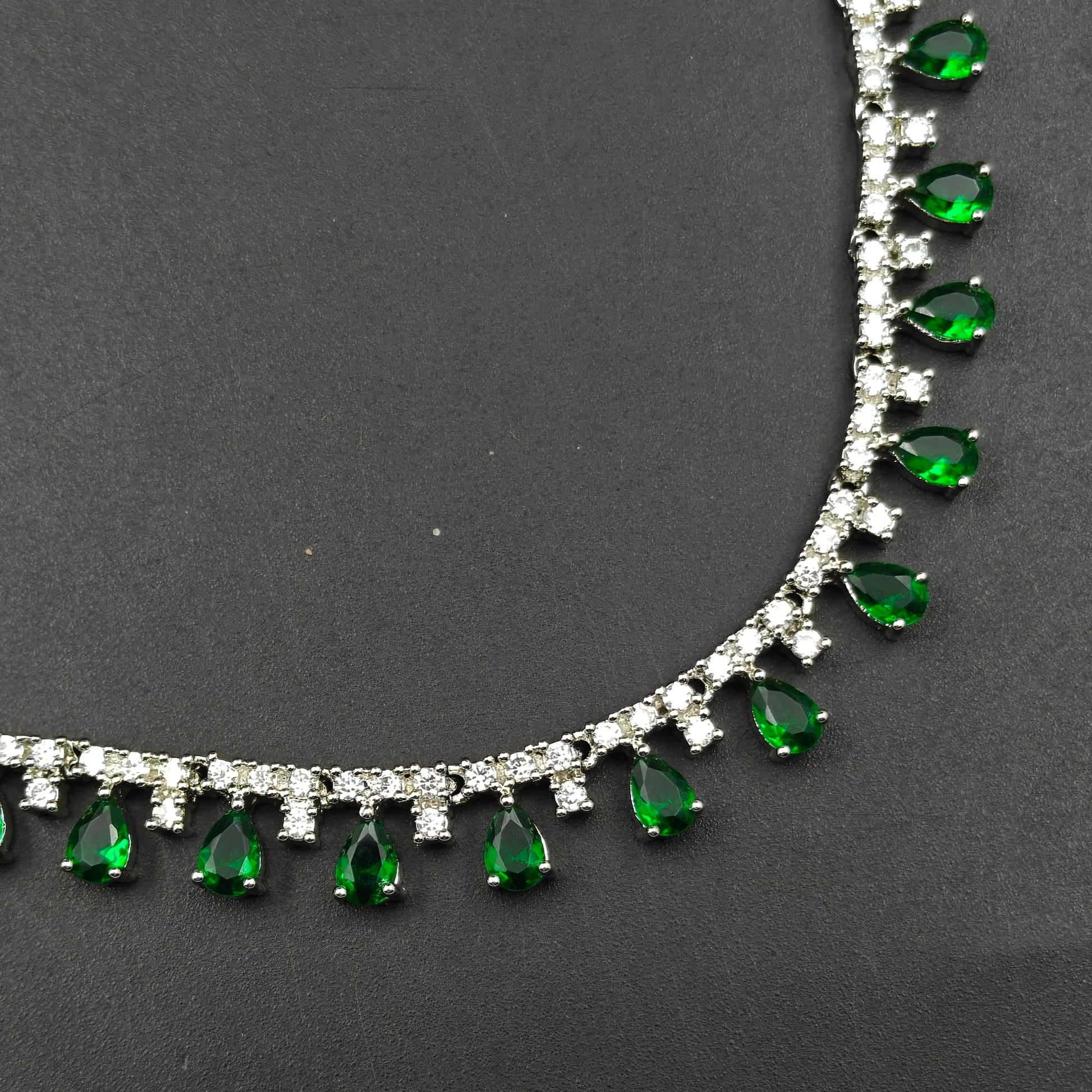 9045 Platinum Green Stone Short Necklace