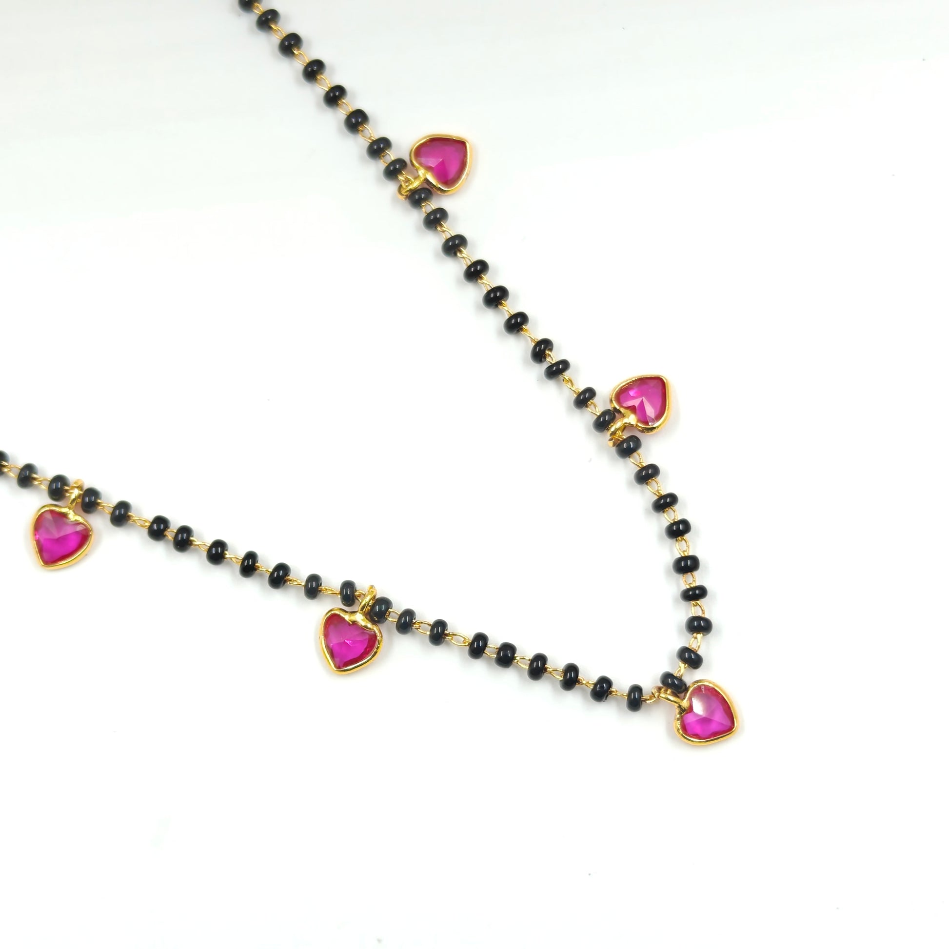 Black beads with drop and heart in red