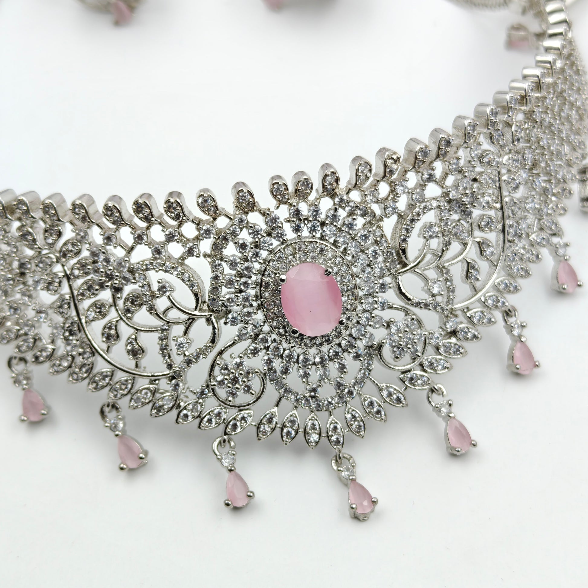 7052/7054/7055/7056 Platinum Simple Baby pink stone choker